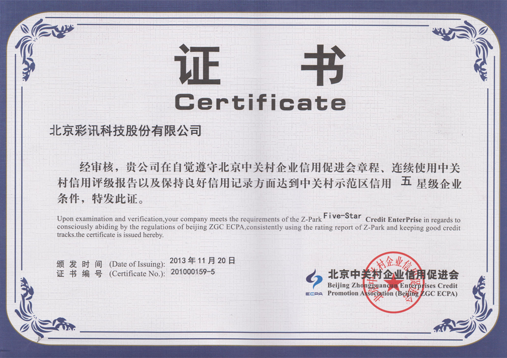 中關村示范區信用五星級企業
